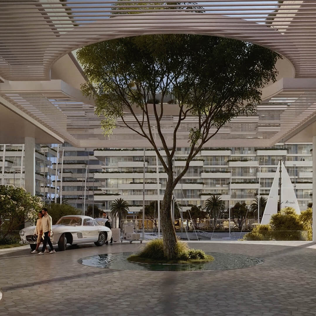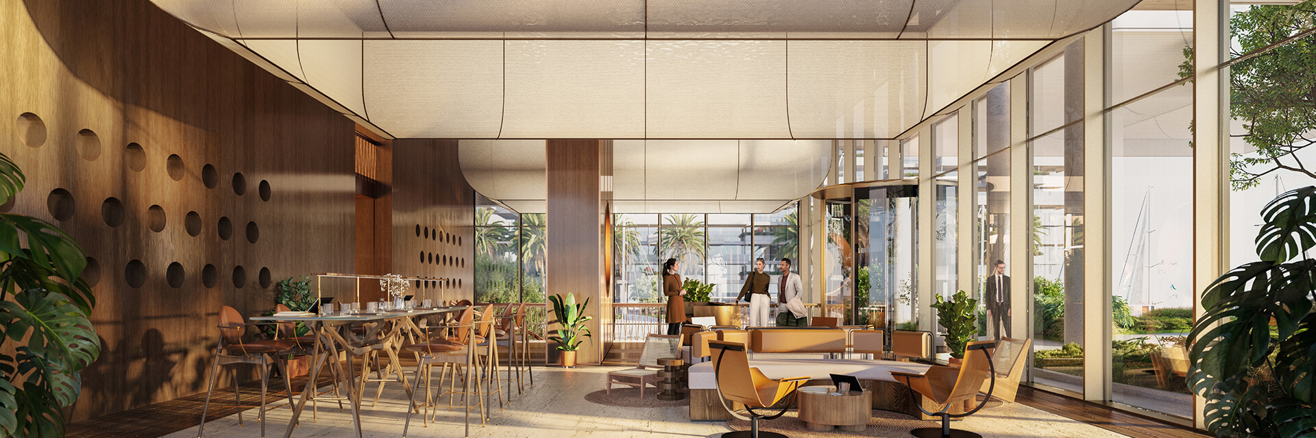 Functionality and comfort are key to the layout: spacious waiting areas, concierge desks, and casual seating zones ensure a seamless transition from public to private space. The interiors emphasize openness and light, echoing the coastal setting while maintaining a modern aesthetic.