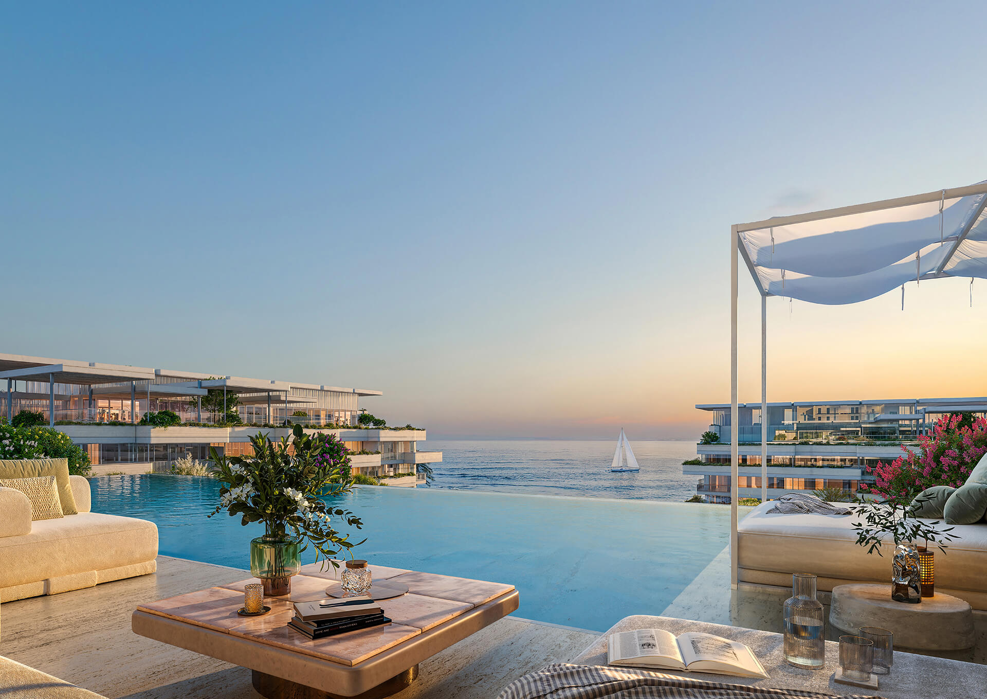 The architecture of Luluat Al Raha embodies a modern interpretation of coastal elegance. Clean lines, glass façades, and natural materials reflect the play of sunlight and the shimmering sea, creating a seamless dialogue between interior and exterior spaces. The design philosophy centers on openness, light, and a sense of belonging.
